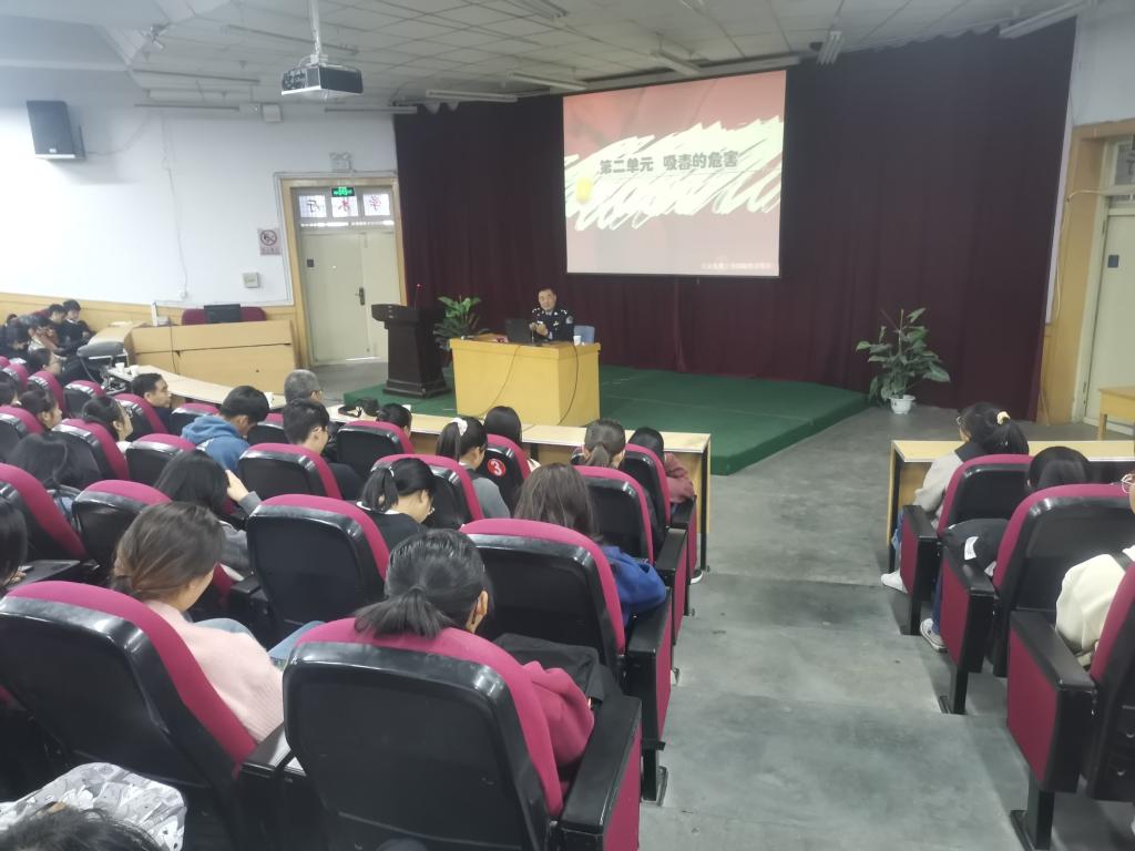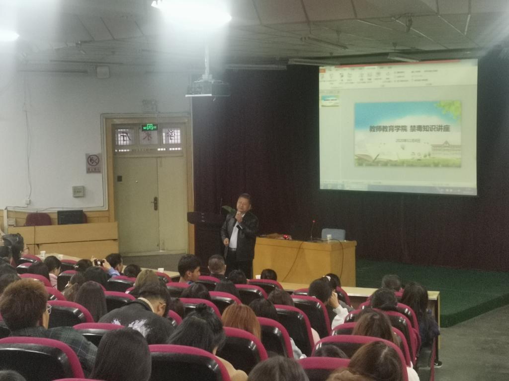 为进一步提高公司员工对毒品的防范意识,杜绝师生吸毒涉毒,营造良好的学习成长环境,创建“无毒校园”。太阳成集团tyc122cc于11月4日下午在学术二厅开展了以“健康人生,绿色无毒”为主题的校园禁毒宣传教育专题讲座。甘肃省第三强制隔离戒毒所教育矫正中心陈新宝主任主讲。公司党委书记李鹏、副经理雒焕国及三百多名师生聆听了讲座。