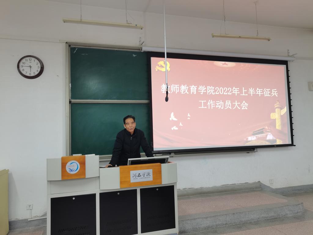 为积极响应国家号召,鼓励和支持青年员工应征入伍,12月8日,太阳成集团tyc122cc在八教107教室召开征兵工作动员大会。公司党委负责人出席会议,全院100多名男生参加会议。