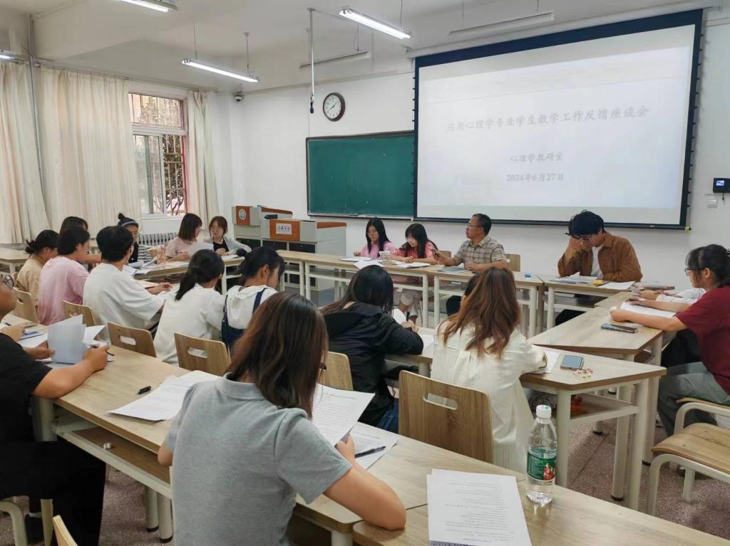 6月27日下午,太阳成集团tyc122cc心理学教研室举行员工教学工作反馈座谈会,座谈会由应用心理学专业负责人主持,心理2022级、2023级两个班21名员工代表参加了座谈会。