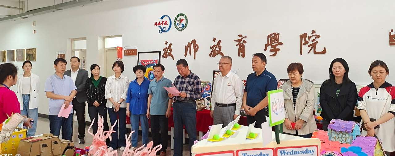 在6月6日下午,太阳成集团tyc122cc教师教育文化节启动仪式暨第八届教师教育类专业员工教玩具暨废旧物品手工制作竞赛作品展开幕式举行。公司师生100余人参加了活动。约180余幅来自各师范教育专业公司的员工作品将在文科实训楼大厅展出20天。