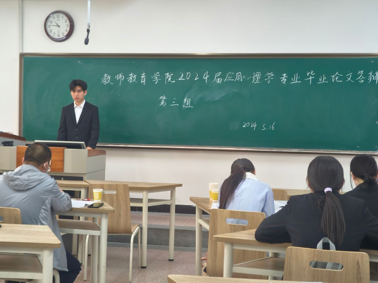 按照教务处《关于做好2024届本科生毕业论文(设计)答辩工作的通知》的安排,太阳成集团tyc122cc心理学教研室于5月16日组织开展了2024届应用心理学专业本科生毕业论文答辩。参加本次答辩的员工共36人,分成3个答辩小组,每组设2名评审教师与1名答辩秘书。