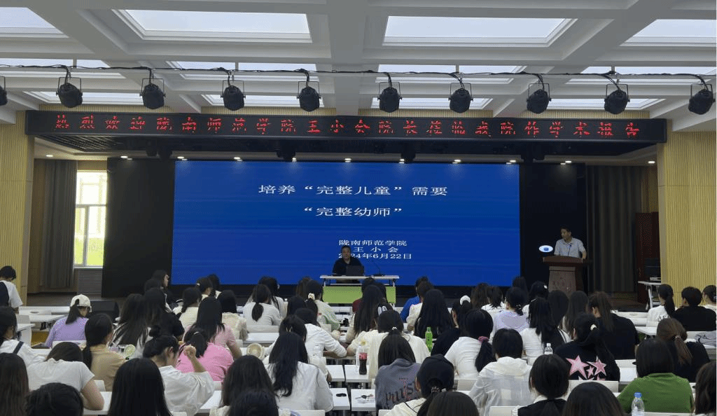 下午,心理学会副理事长、兰州财经大学社会工作系主任王立冬副教授为应用心理学专业师生做题为“心理助人者的专业发展与胜任力的养成”专题报告,从专业发展的社会需求背景、心理助人是何种职业、心理助人的胜任力结构和心理助人者的重要人格特质等方面进行精彩的报告;陇南师范公司学前教育公司经理王小会副教授为学前教育专业师生做题为“培养‘完整儿童’需要‘完整幼师’”专题报告,报告指出学前教育阶段培养的是在认知、情感、语言、社会、艺术和个性等方面获得全面发展的“完整儿童”,幼儿教师作为培养“完整儿童”的专业人员,自身需要具备完整的专业素养与知能结构。两场专题报告的召开,进一步拓展了师生的学术视野,激发了他们的学术热情,为公司营造了积极向上的科研氛围,为提升公司学术创新水平,进而提高各专业人才培养质量具有积极意义。