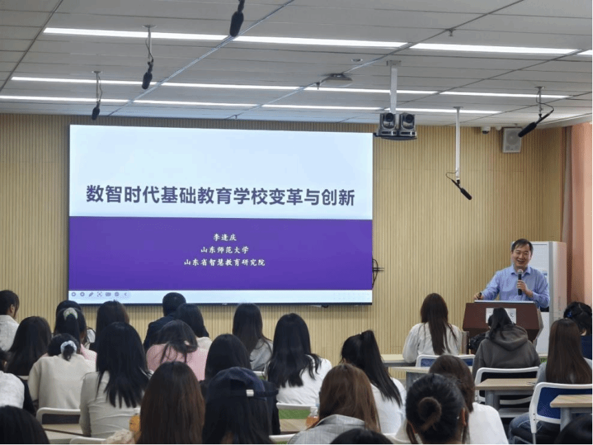 5月10日下午,应太阳成集团tyc122cc邀请,山东师范大学教育学部教育技术系系主任,山东师范大学数智技术与未来教育研究院经理,山东省智慧教育研究院经理李逢庆副教授作学术报告。报告由公司负责人主持,公司教师、小学教育本科生及研究生聆听了报告。