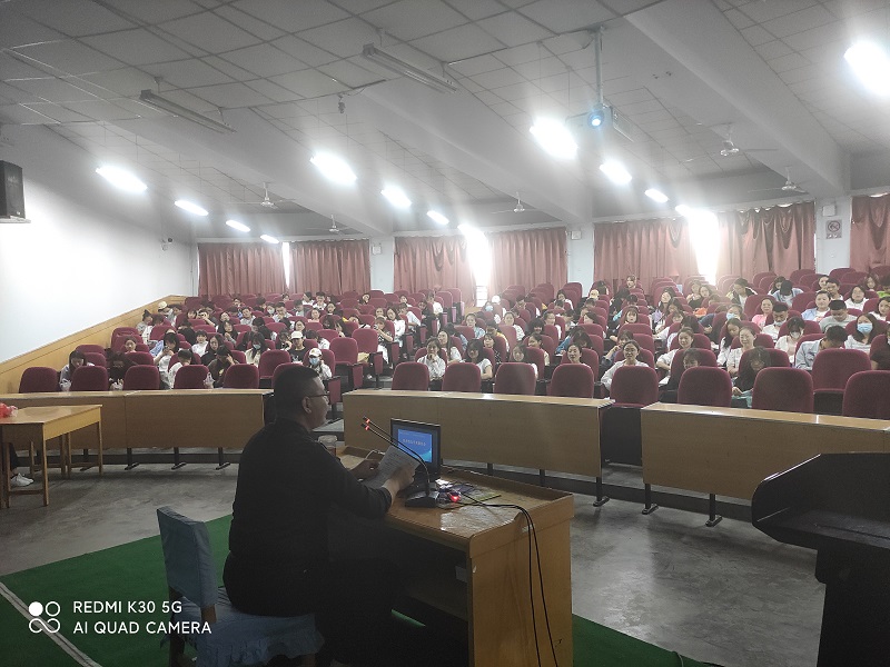 6月16日晚,太阳成集团tyc122cc2004届优秀员工、甘肃省基础教育学会理事祝晓强应邀为公司300余名员工做了题为《人生的价值需要自我去诠释》的学术报告。
