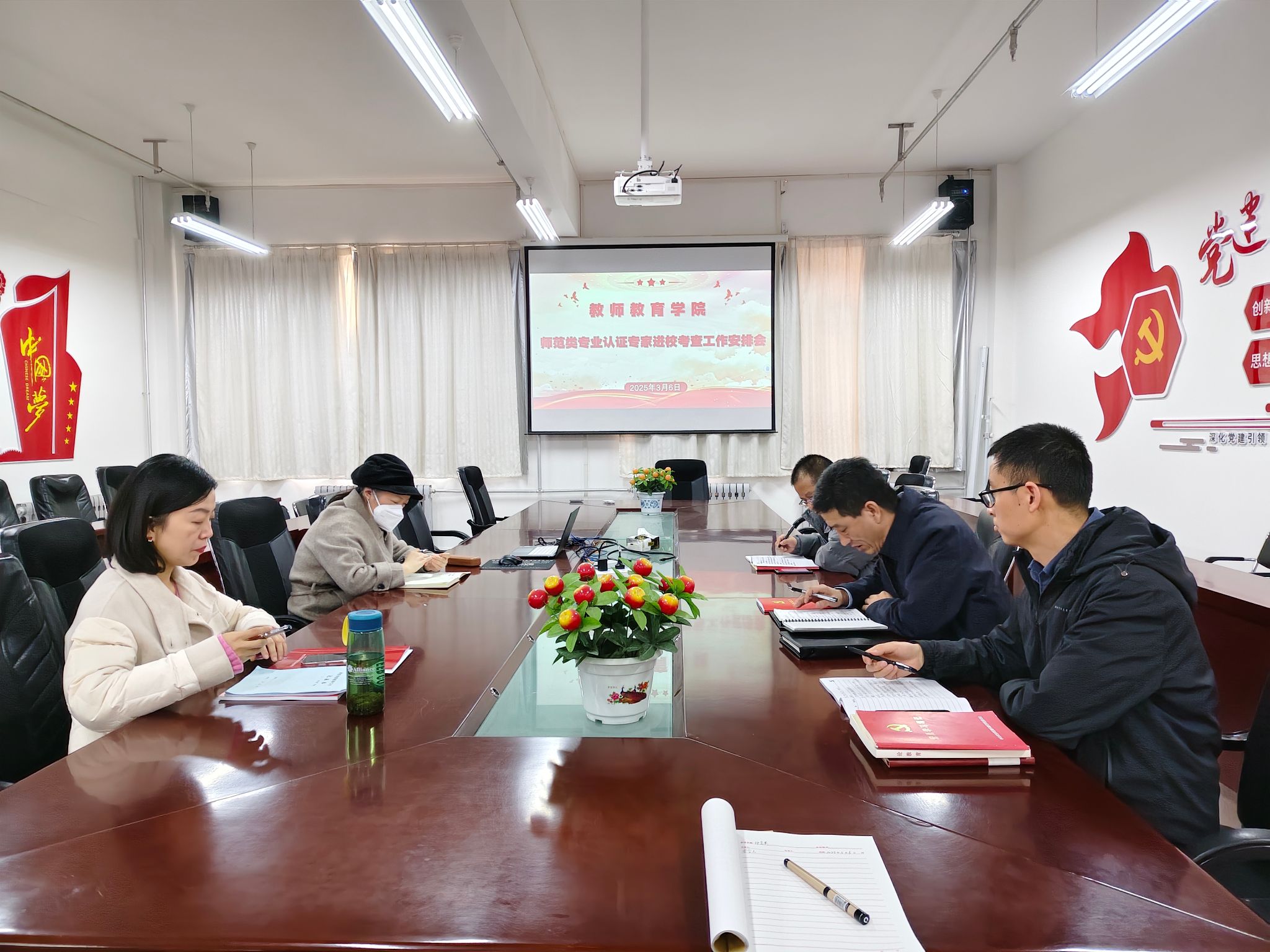 3月6日下午,公司召开了师范类专业认证专家进校考查工作安排会。会议由公司负责人主持,教师教育教研室主任、承担外语、美术、物理、思政、历史和音乐等六个公司师范类专业教师教育课程的教师及办公室工作人员参加了会议。